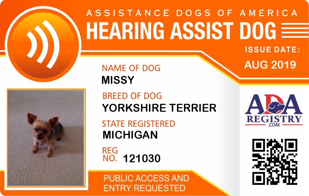 Hearing Assistance Dog Registration for Missy