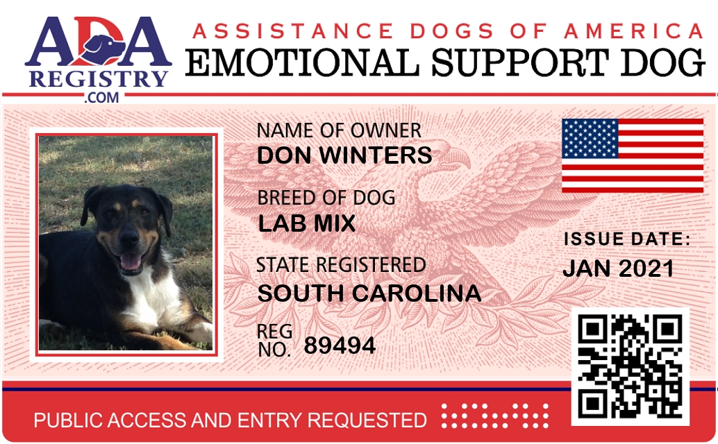 Emotional Support Dog Registration for Mollie Sue Winters