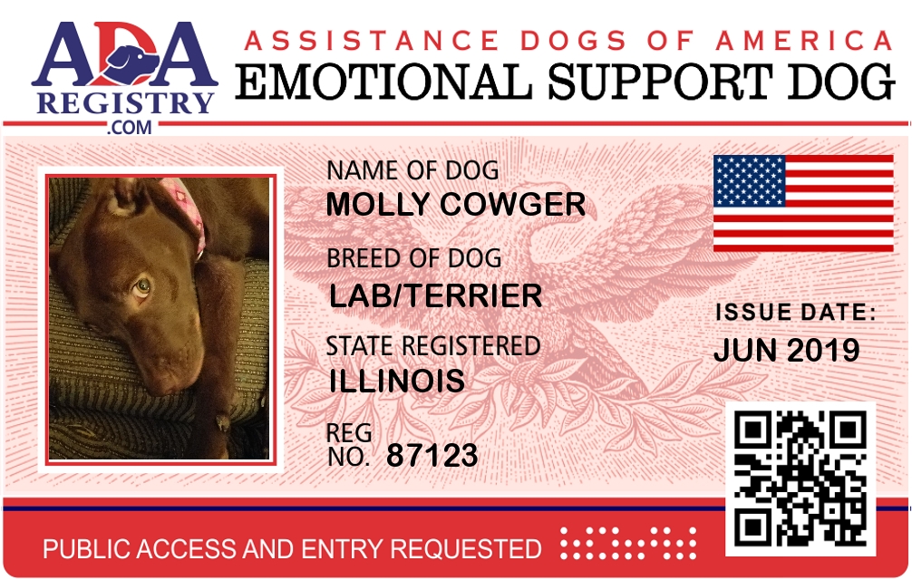 Emotional Support Dog Registration for MOLLY COWGER
