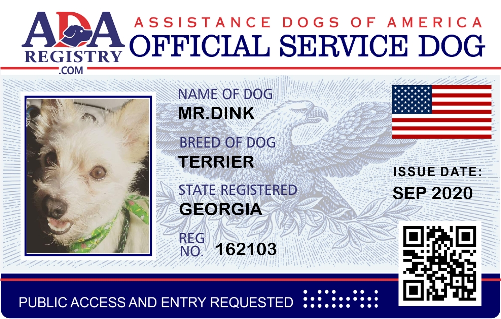 Service Dog Registration for Mr.Dink