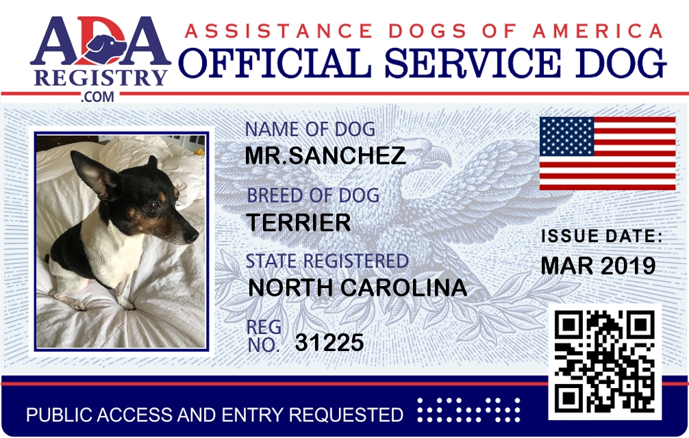 Emotional Support Dog Registration for Mr.Sanchez