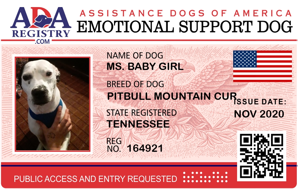 Emotional Support Dog Registration for Ms. Baby Girl