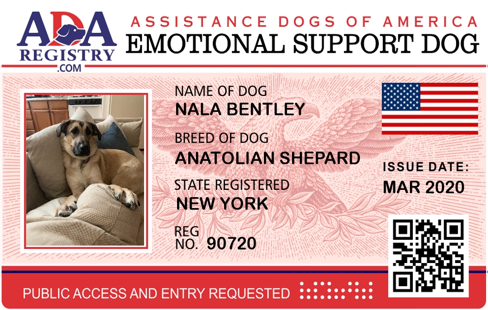 Emotional Support Dog Registration for Nala Bentley