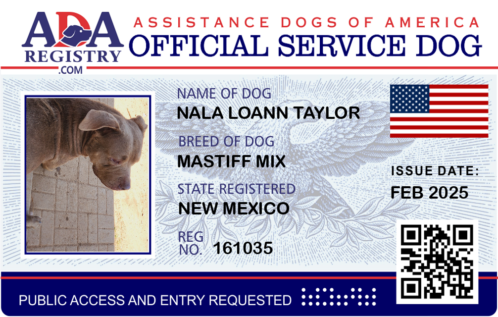 Service Dog Registration for Nala LoAnn Taylor
