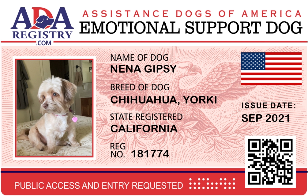 Emotional Support Dog Registration for Nena Gipsy