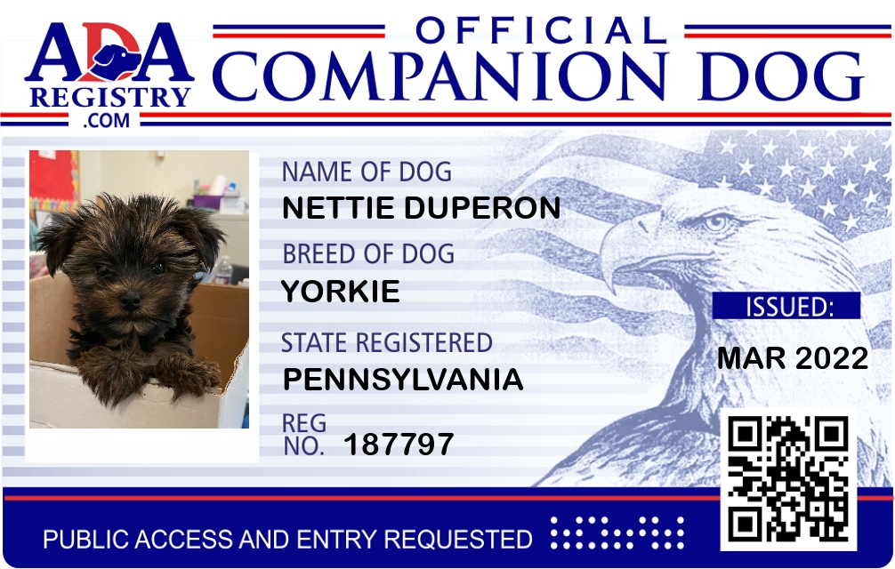 Companion Dog Registration for Nettie Duperon