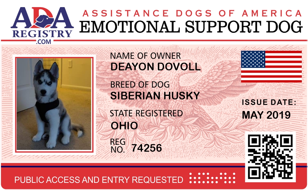 Emotional Support Dog Registration for Nikitdow Dovoll