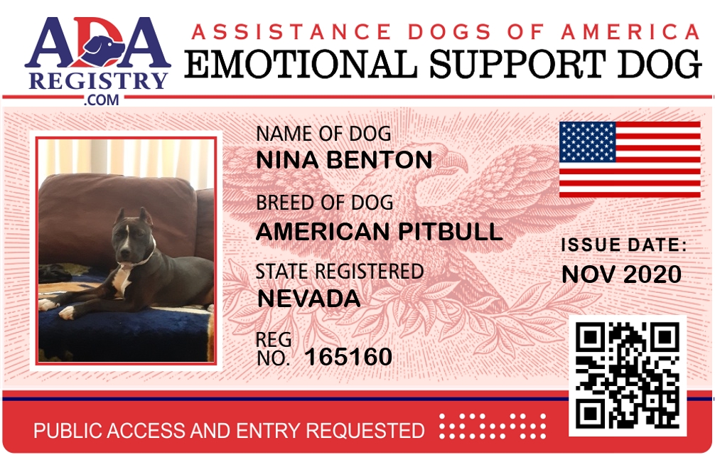 Emotional Support Dog Registration for Nina Benton
