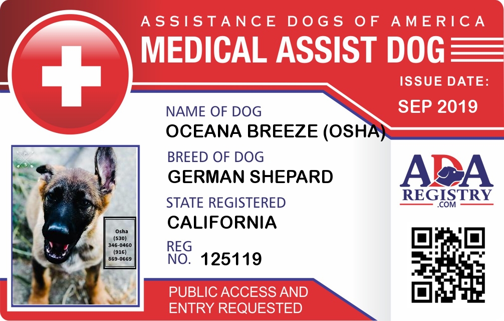 Medical Assistance Dog Registration for Oceana Breeze (Osha)