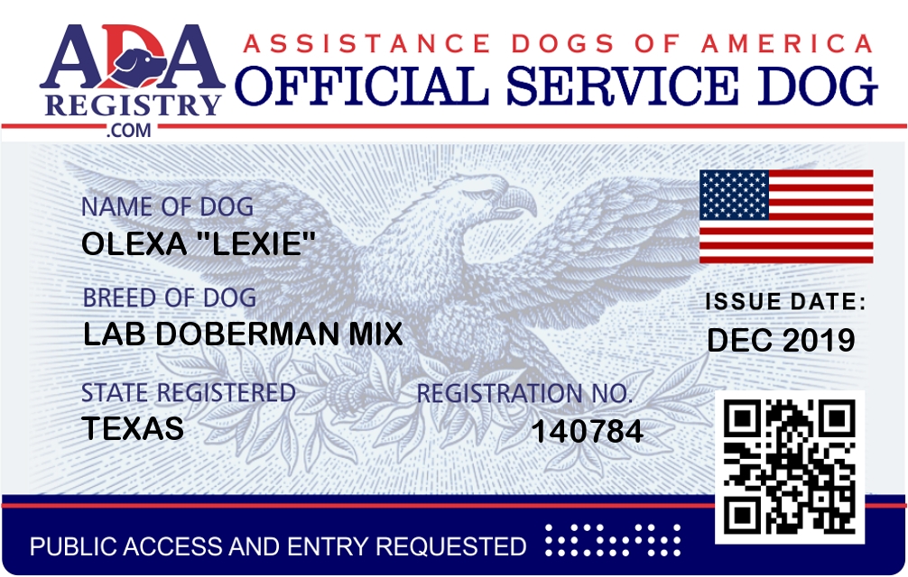 Service Dog Registration for Olexa “Lexie”