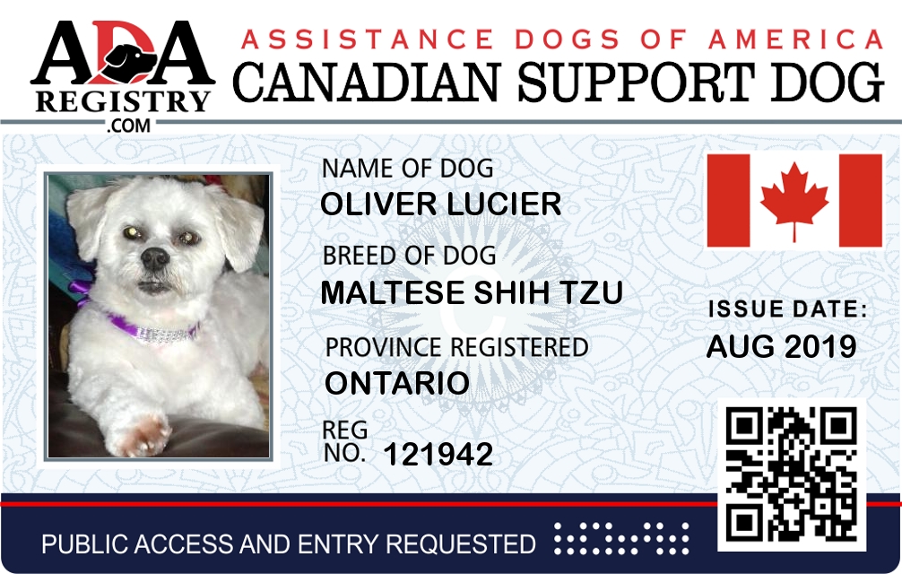 Emotional Support Dog Registration for Oliver Lucier