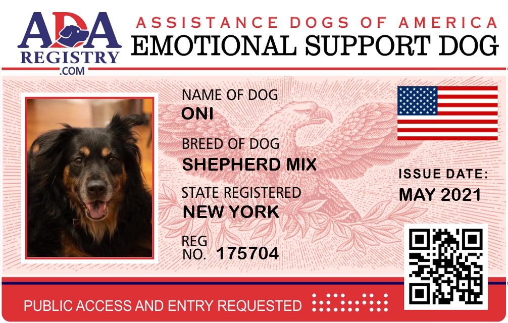 Emotional Support Dog Registration for Oni
