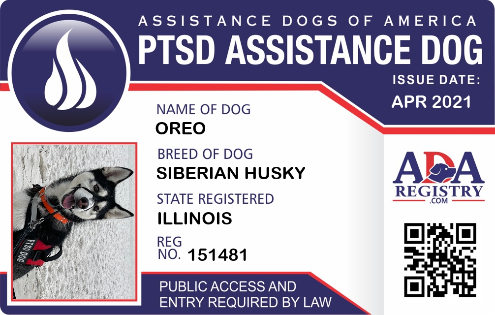 PTSD Assistance Dog Registration for Oreo