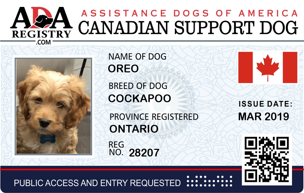 Emotional Support Dog Registration for Oreo