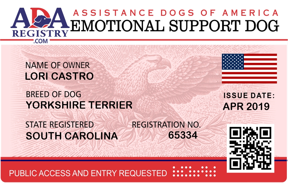 Emotional Support Dog Registration for Oreo Castro