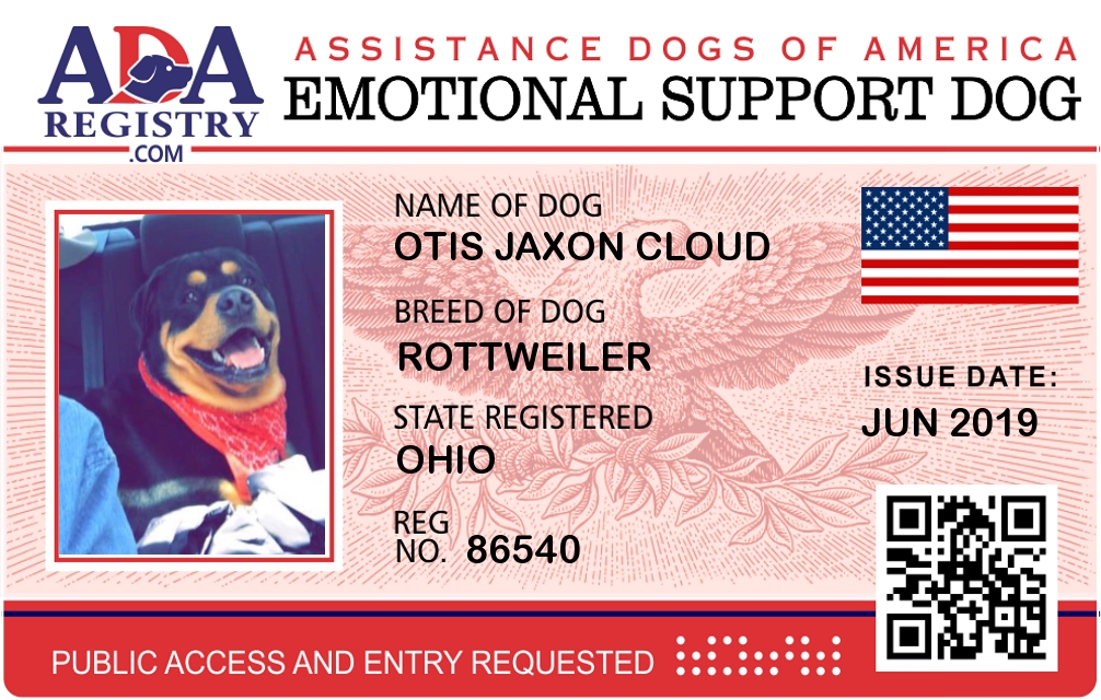 Emotional Support Dog Registration for Otis Jaxon Cloud