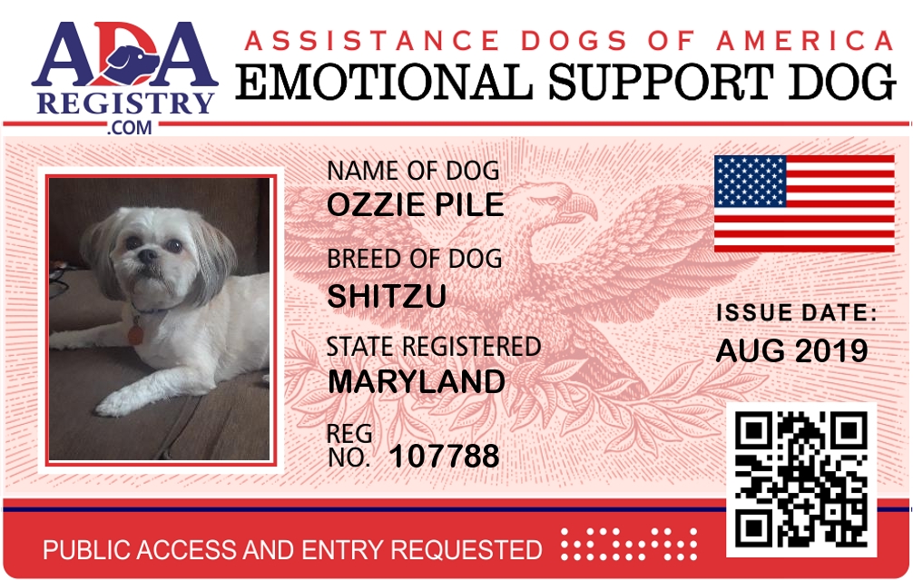 Emotional Support Dog Registration for Ozzie Pile
