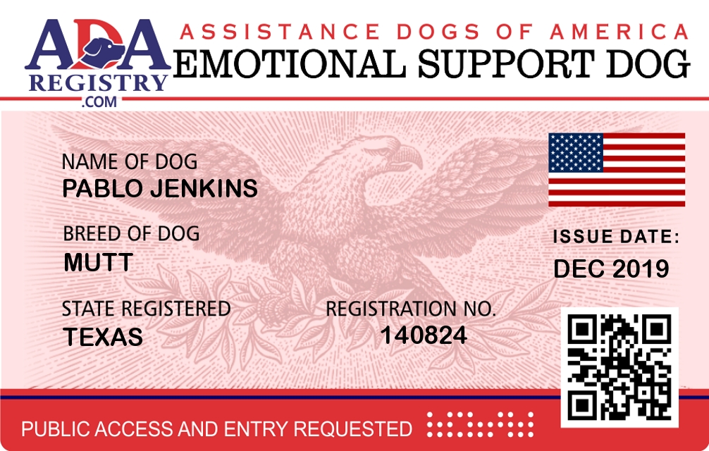 Emotional Support Dog Registration for Pablo Jenkins