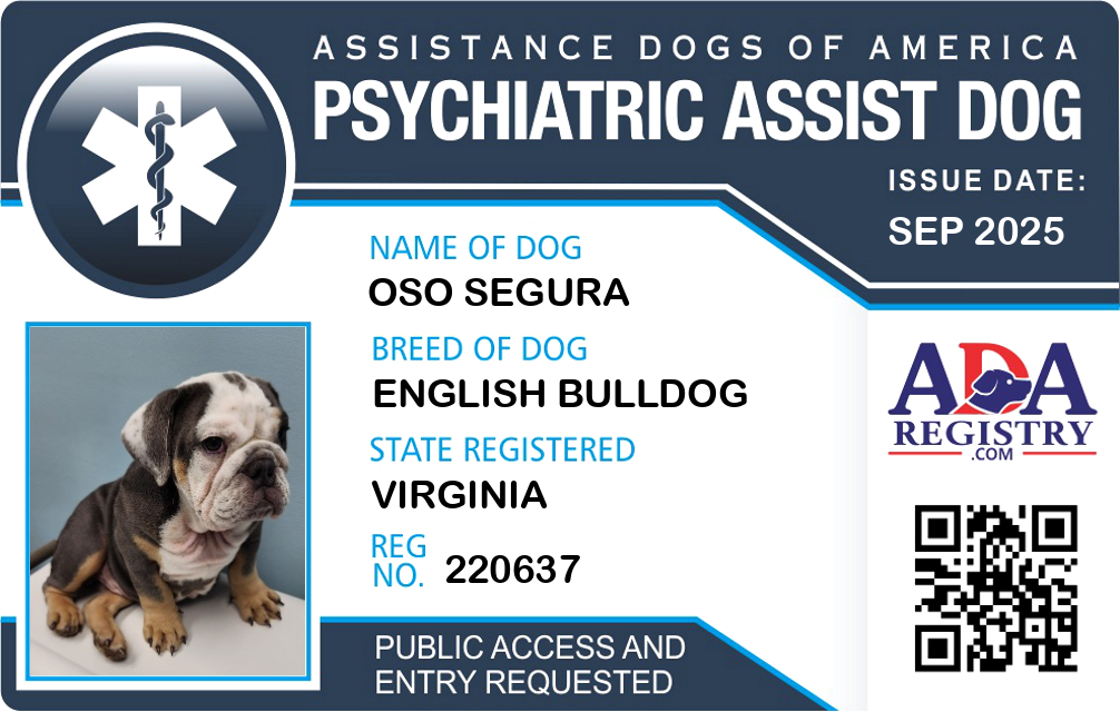 Psychiatric Service Dog Registration for Oso Segura