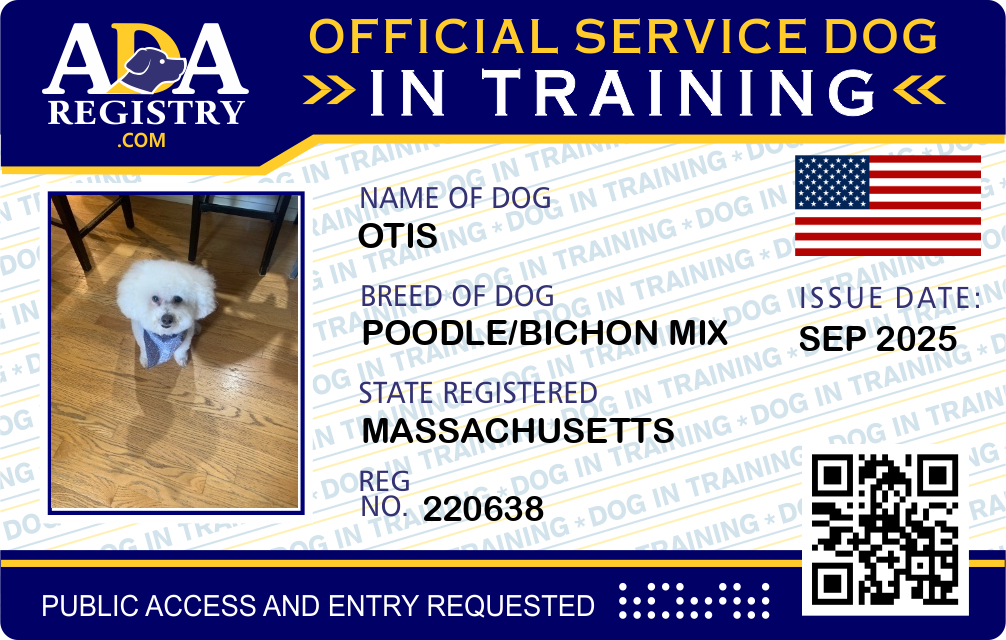 Service Dog In Training Registration for Otis