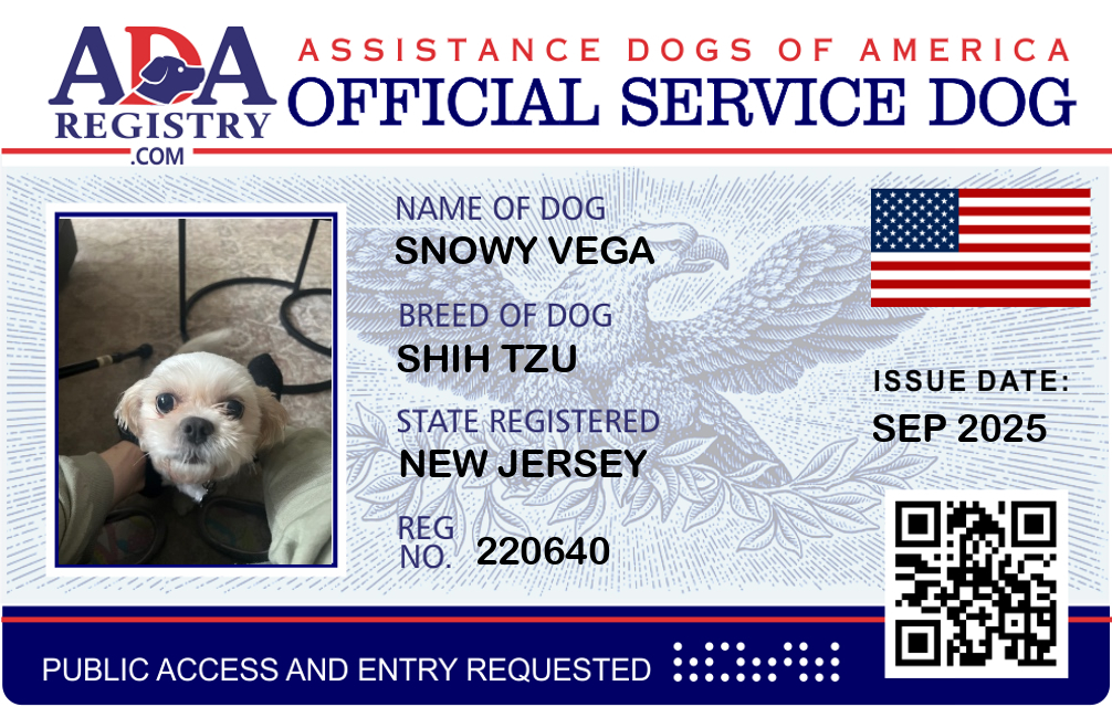 Service Dog Registration for Snowy Vega