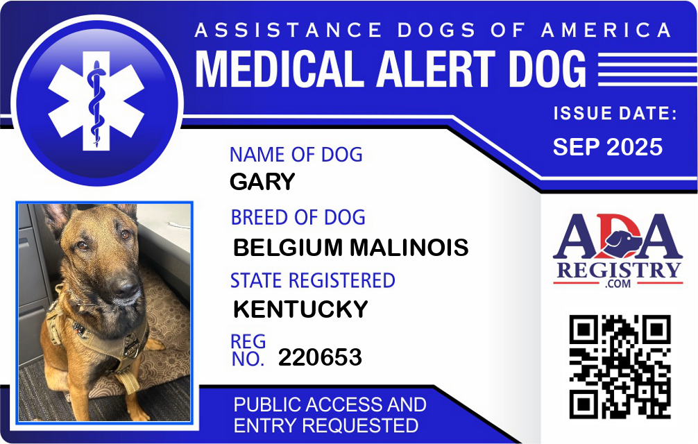 Medical Alert Dog Registration for Gary