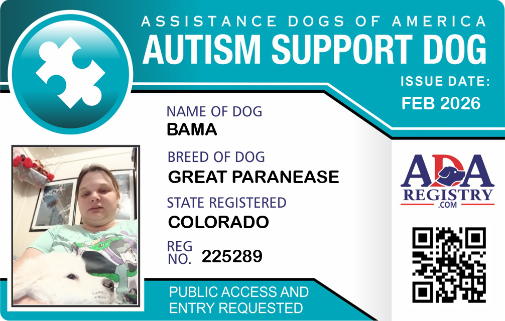 Autism Assistance Dog Registration for Bama