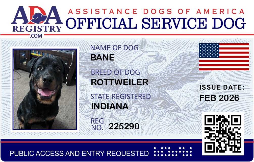 Service Dog Registration for Bane