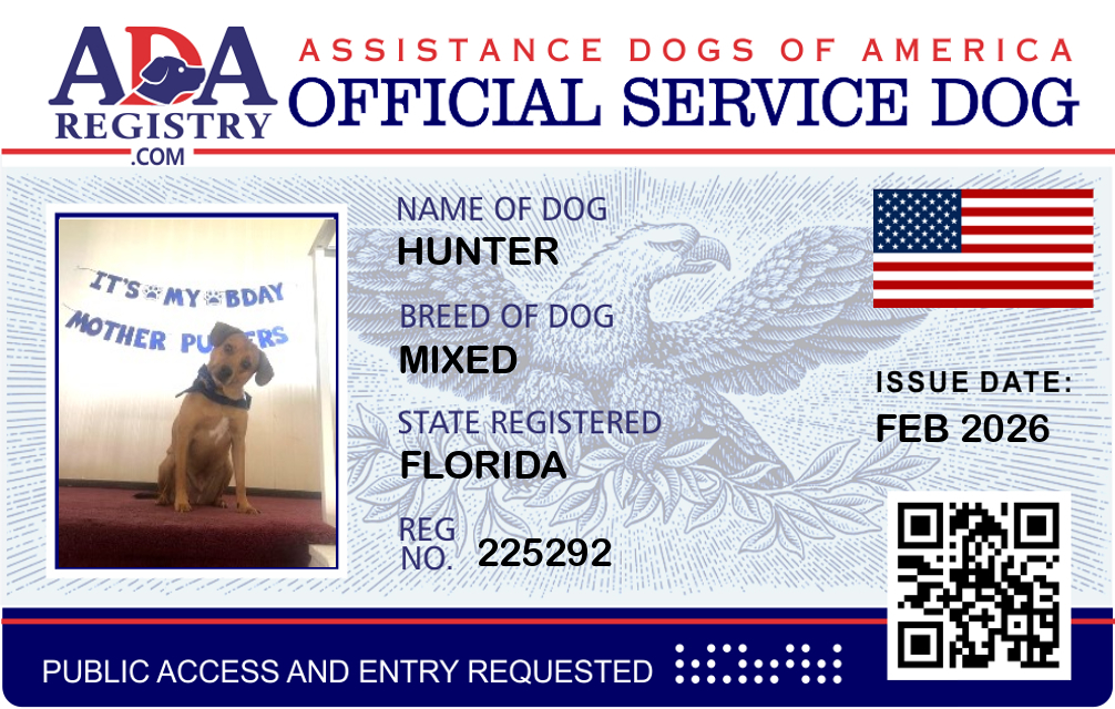 Service Dog Registration for Hunter