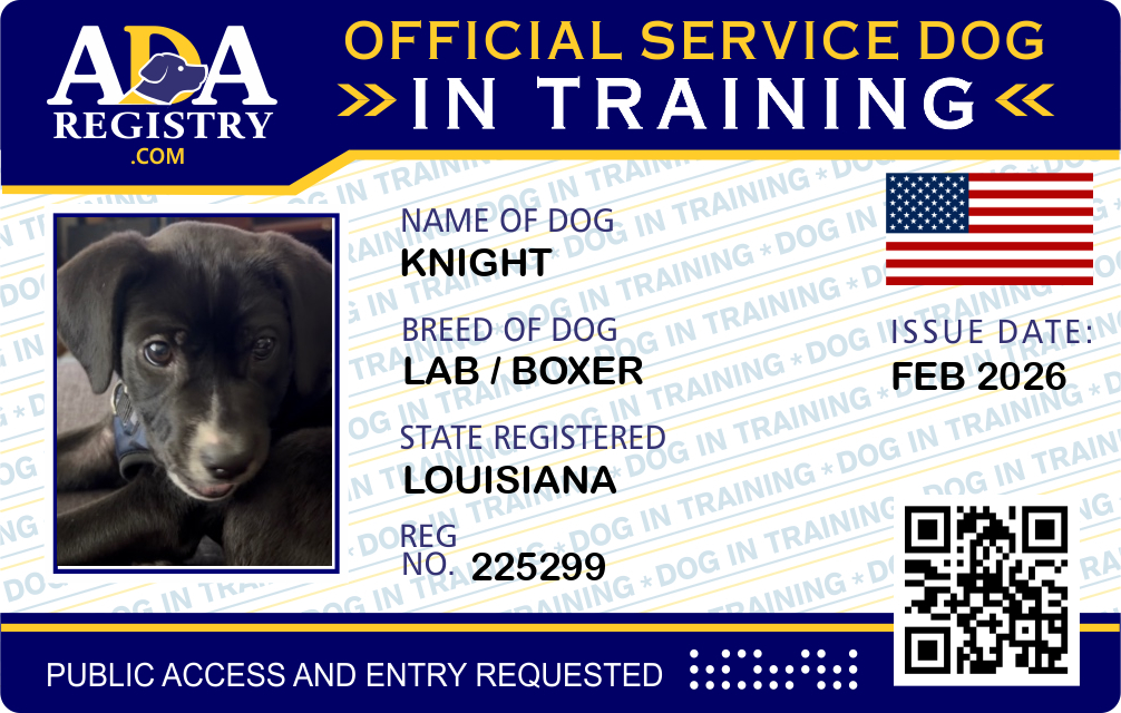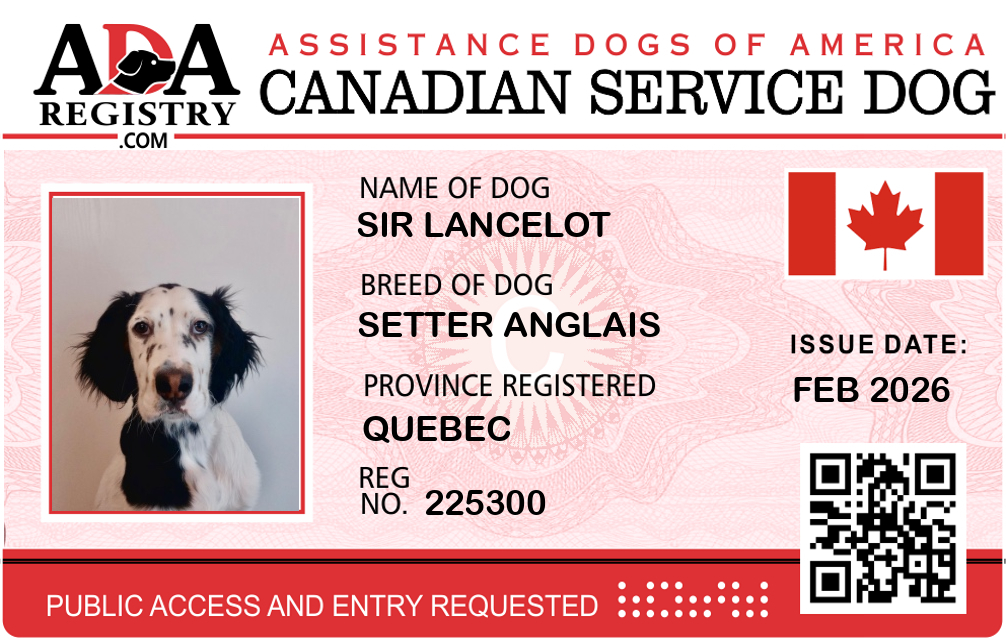 Service Dog Registration for Sir Lancelot