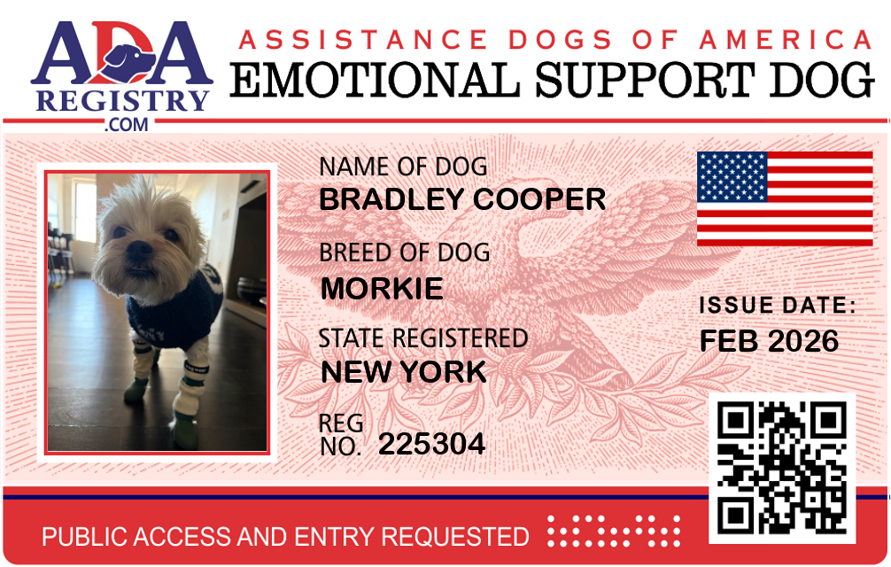 Emotional Support Dog Registration for Bradley Cooper