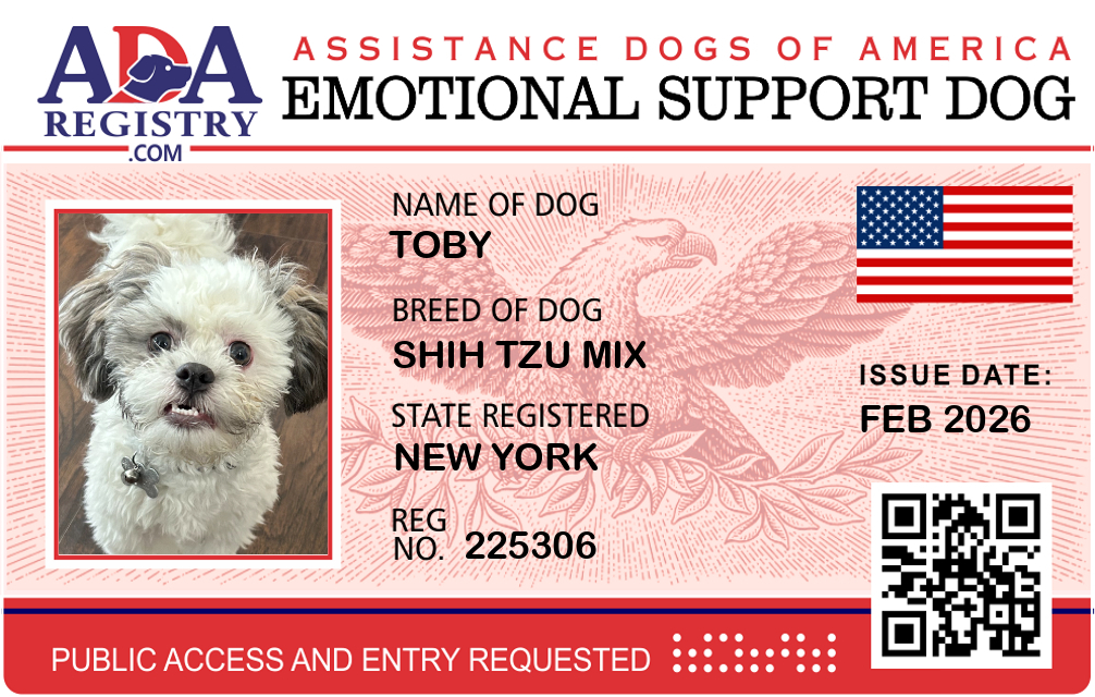 Emotional Support Dog Registration for Toby
