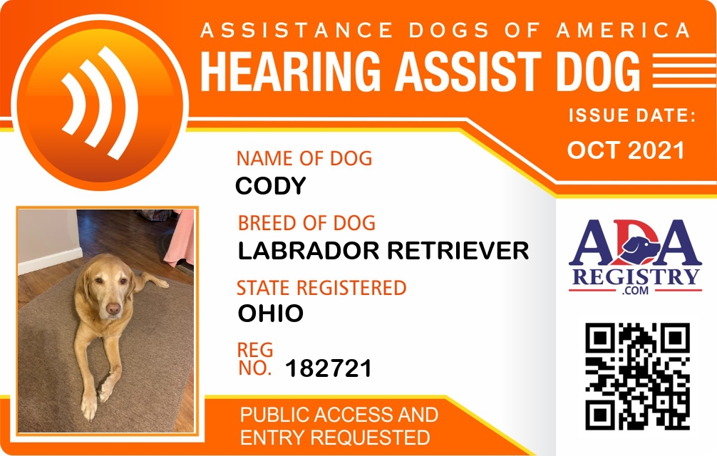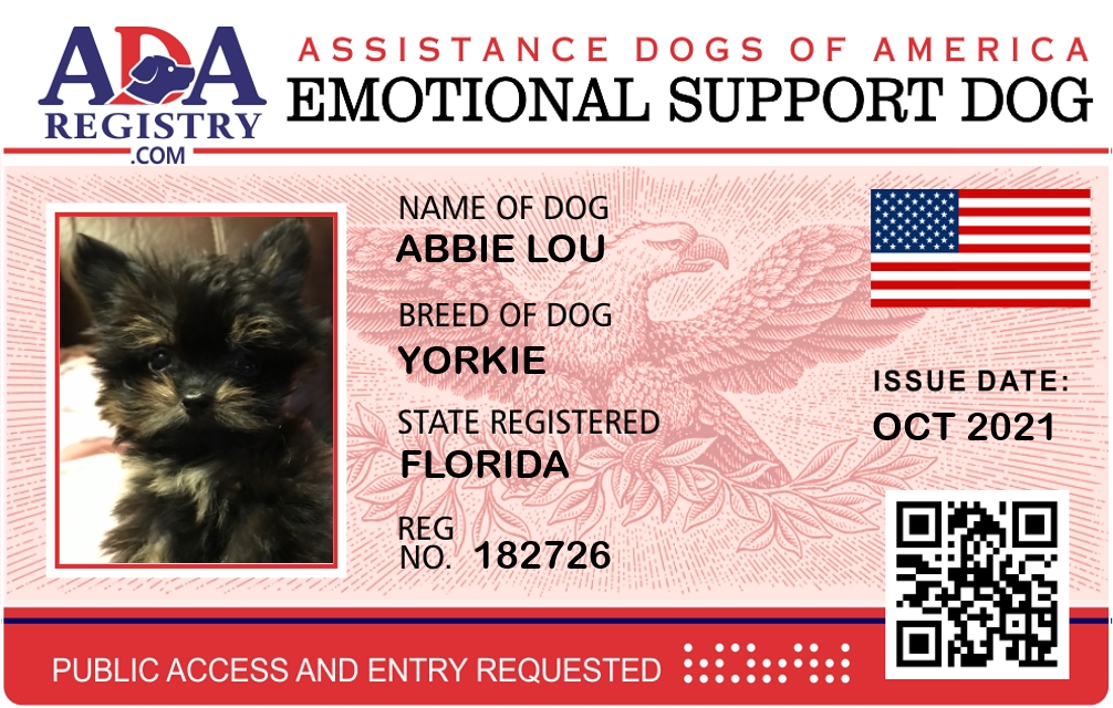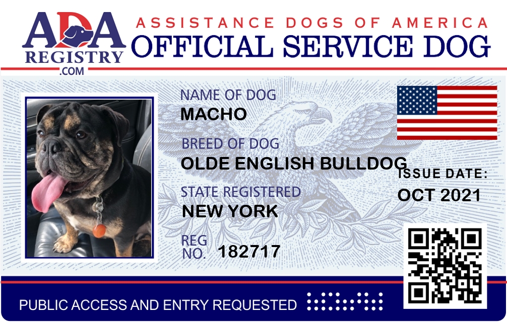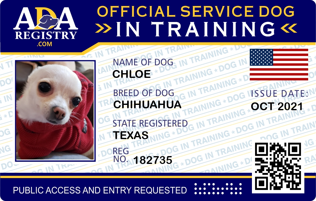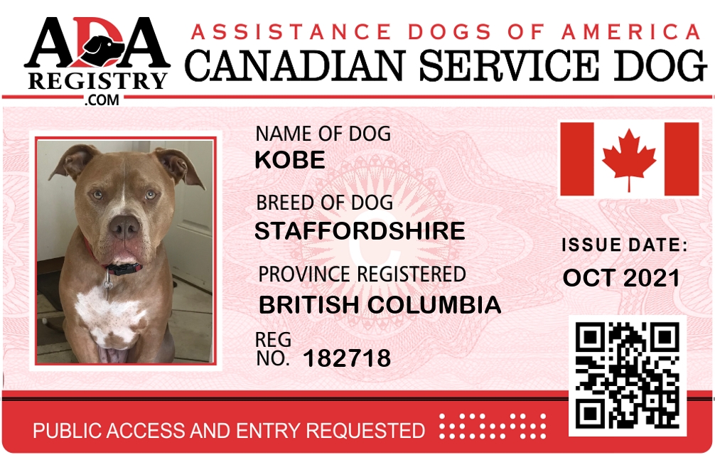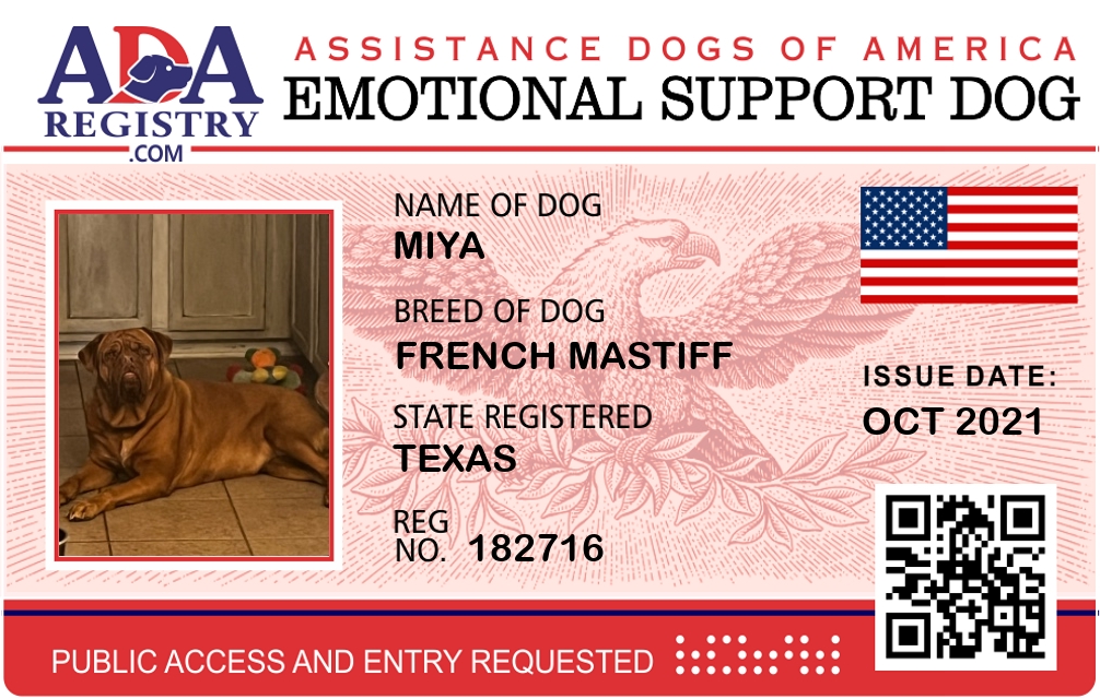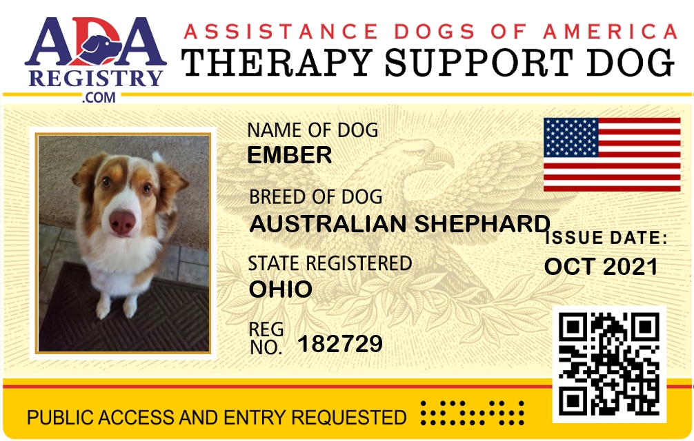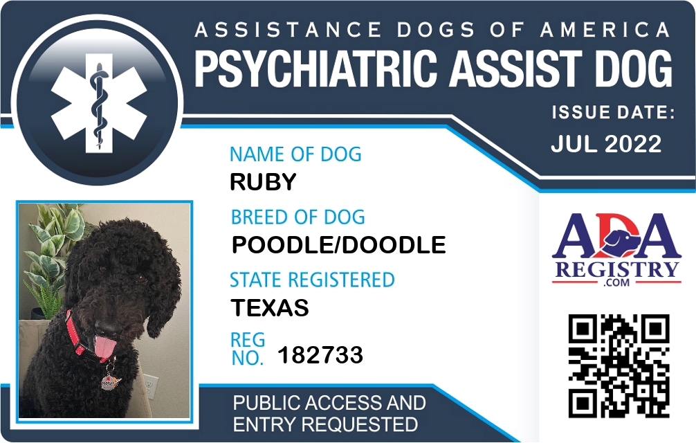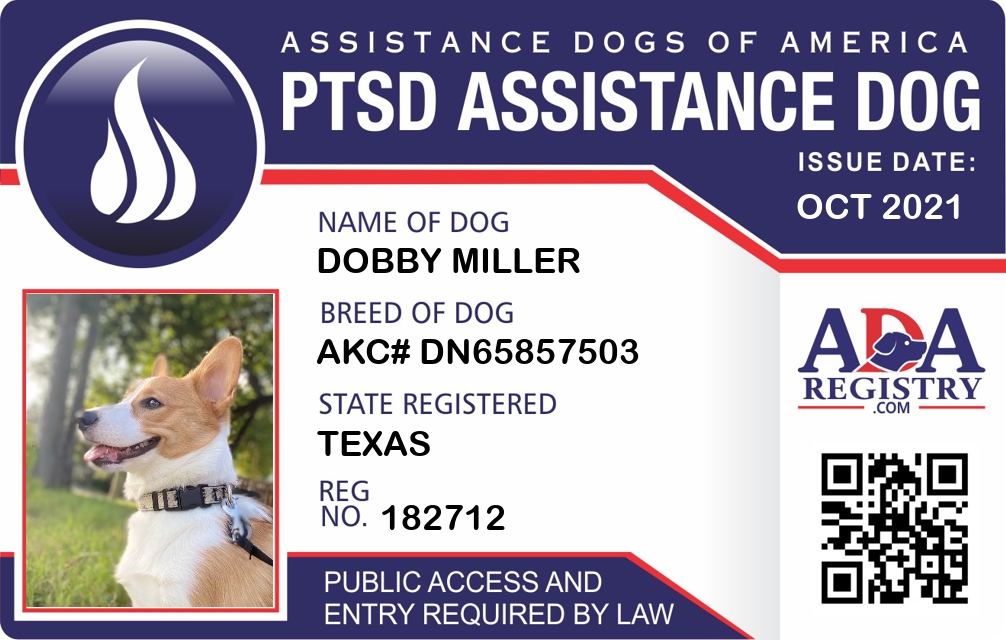PTSD Assistance Dog Registration for DOBBY MILLER