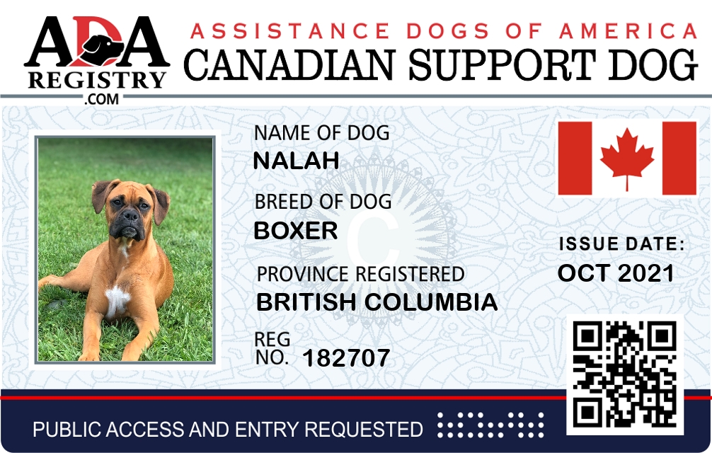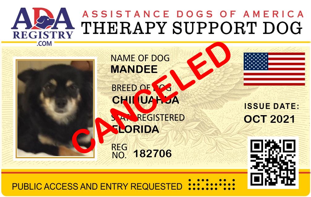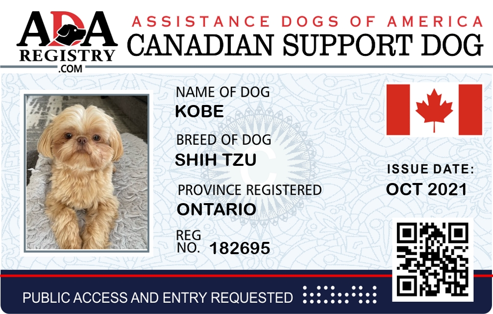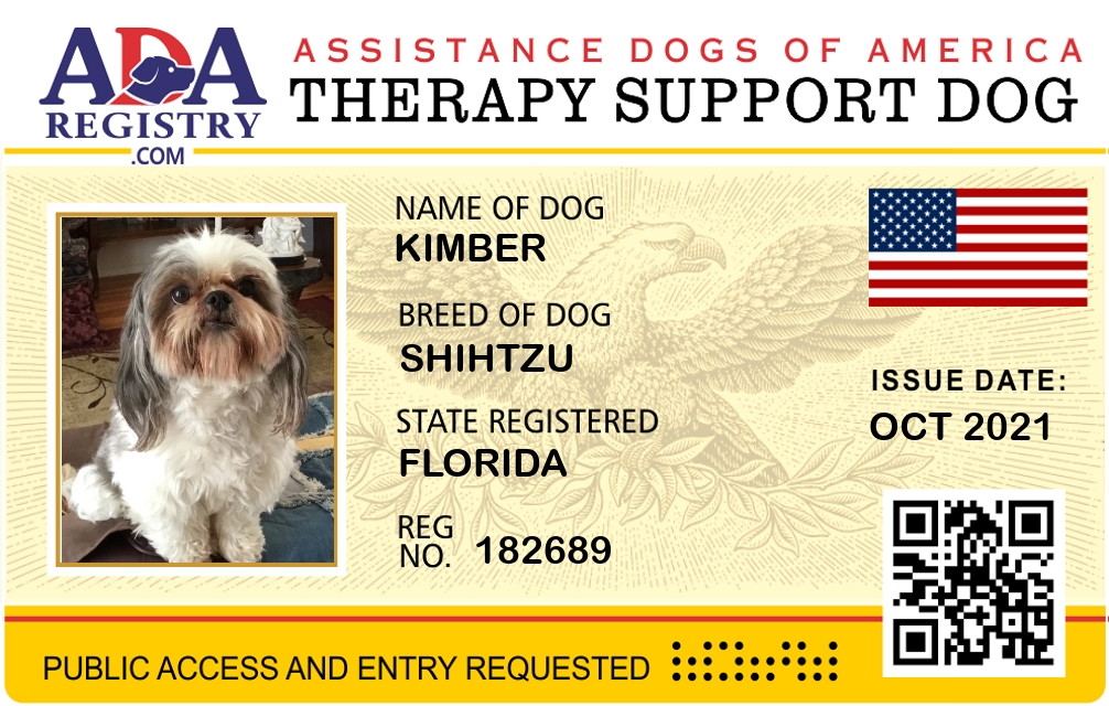 Emotional Support Dog Registration for Bella Grubb-Manger