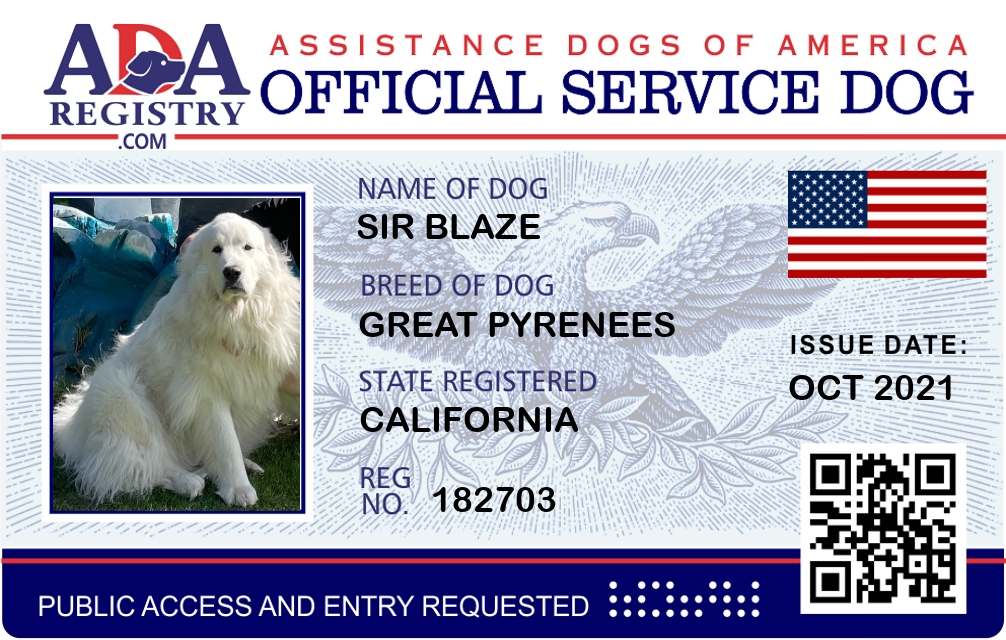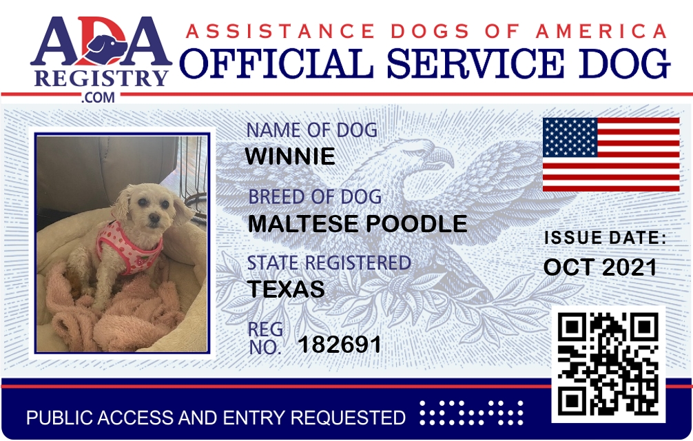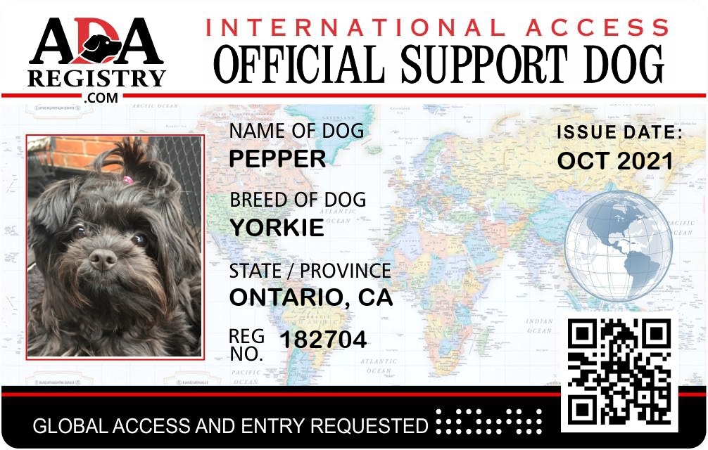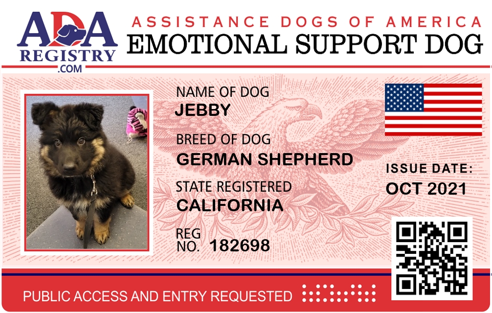 Emotional Support Dog Registration for Chloe Pebworth Bell