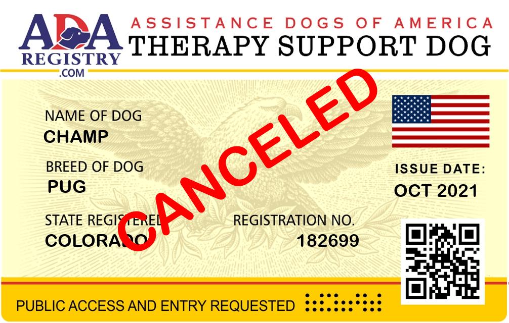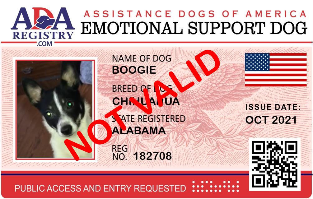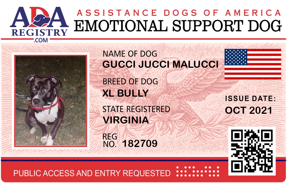 Emotional Support Dog Registration for Gucci Jucci Malucci