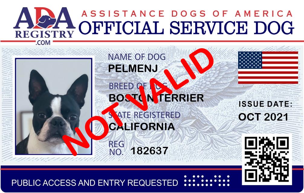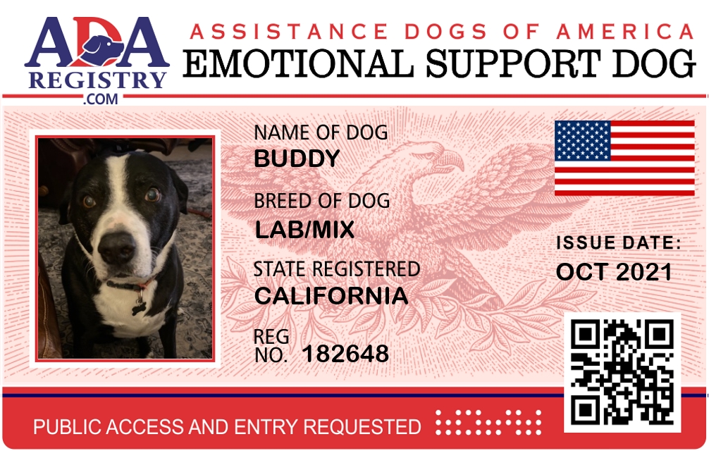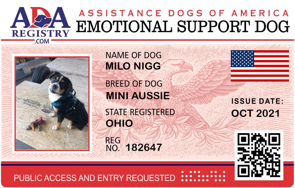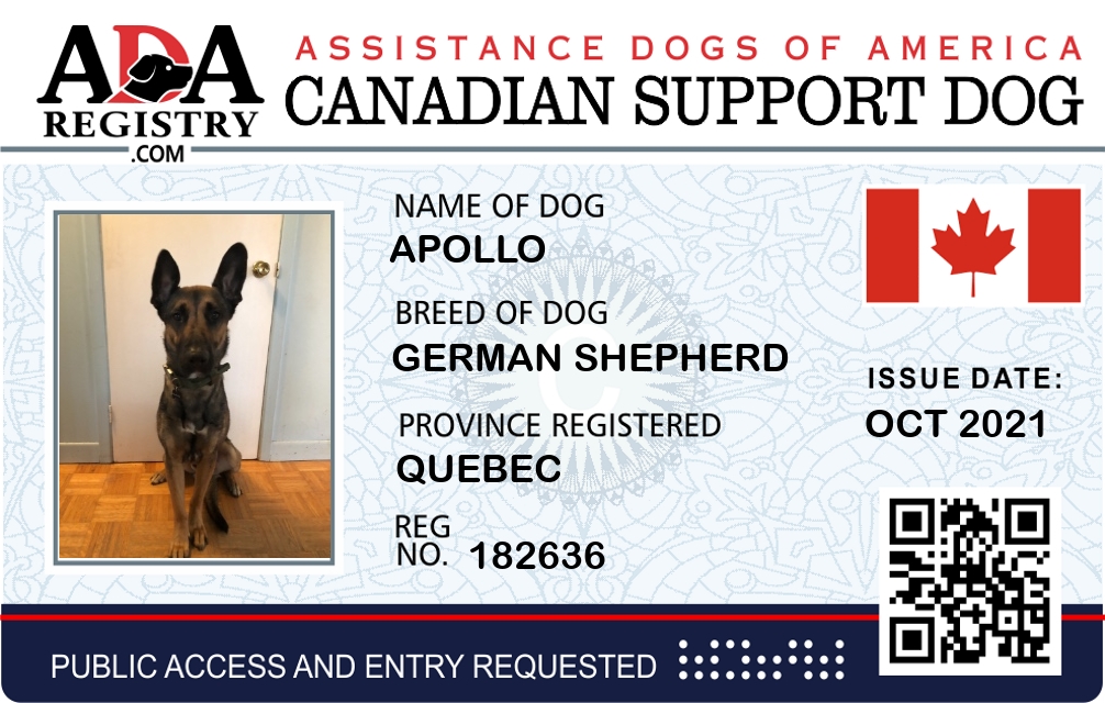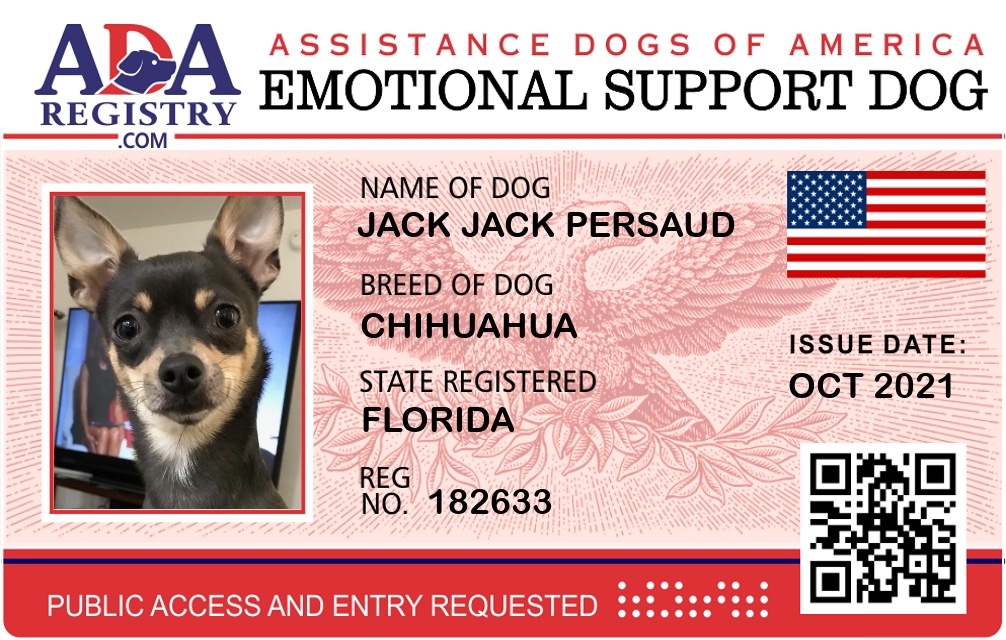 Emotional Support Dog Registration for JACK JACK PERSAUD