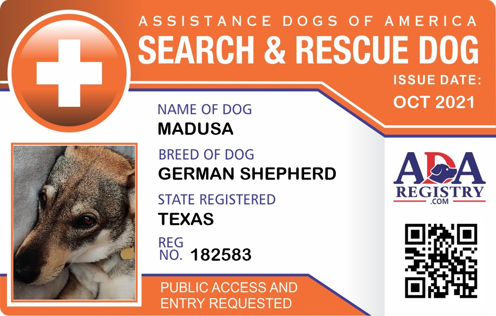 Search And Rescue Dog Registration for Madusa