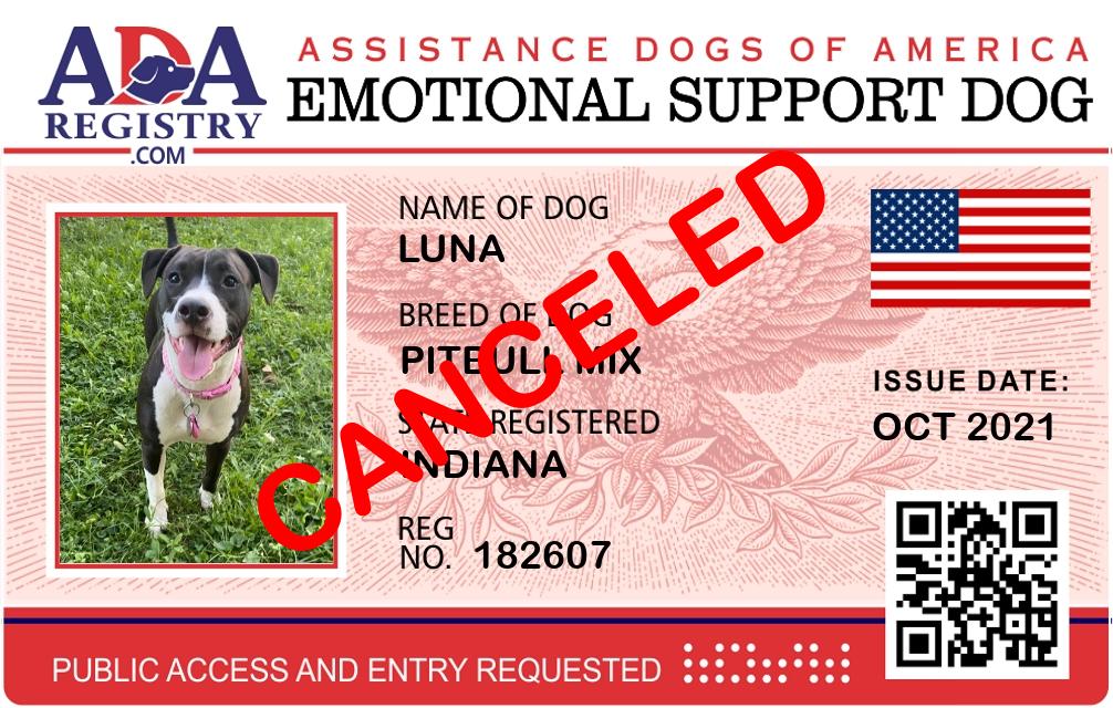 Emotional Support Dog Registration for Luna