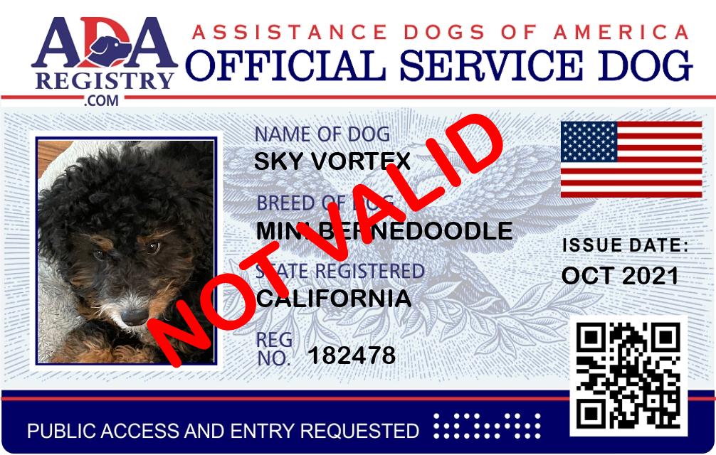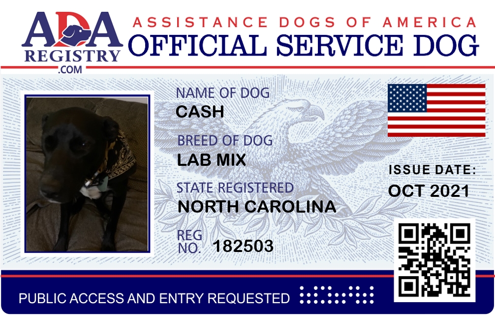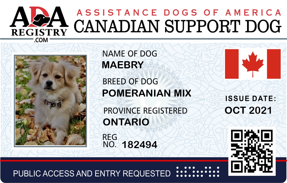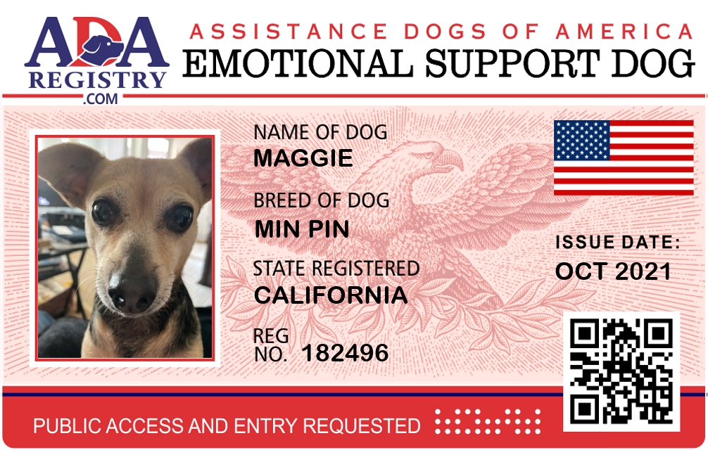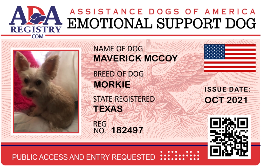 Emotional Support Dog Registration for MAVERICK MCCOY