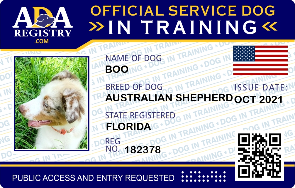 Service Dog In Training Registration for Boo