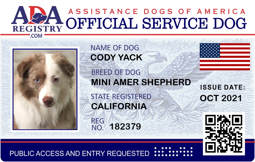 Service Dog Registration for Cody Yack