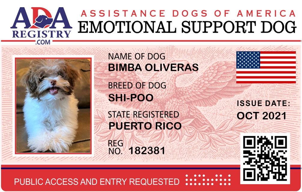 Emotional Support Dog Registration for Bimba Oliveras