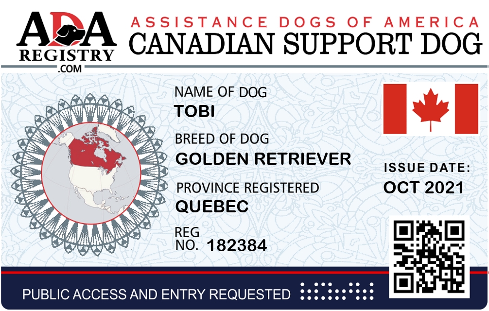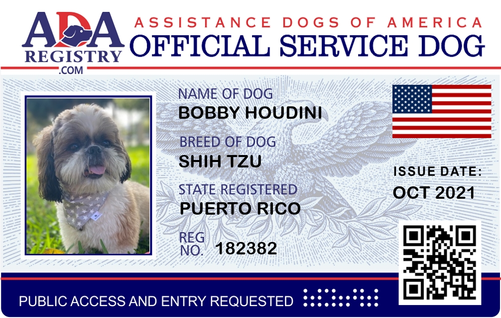 Service Dog Registration for Bobby Houdini