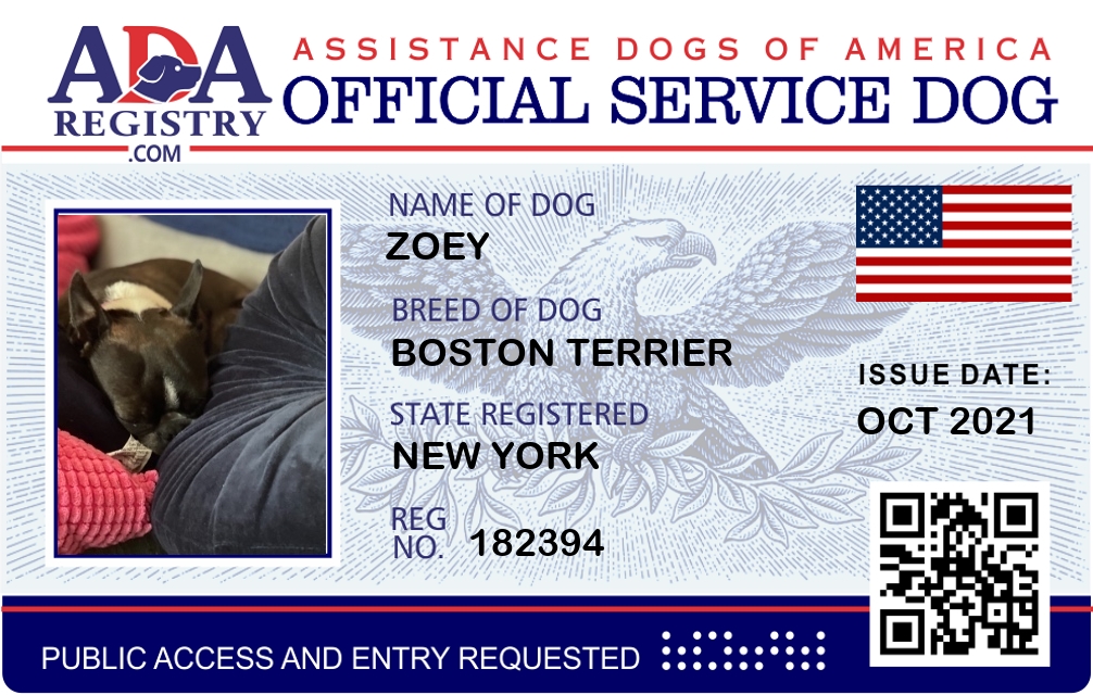 Service Dog Registration for Zoey