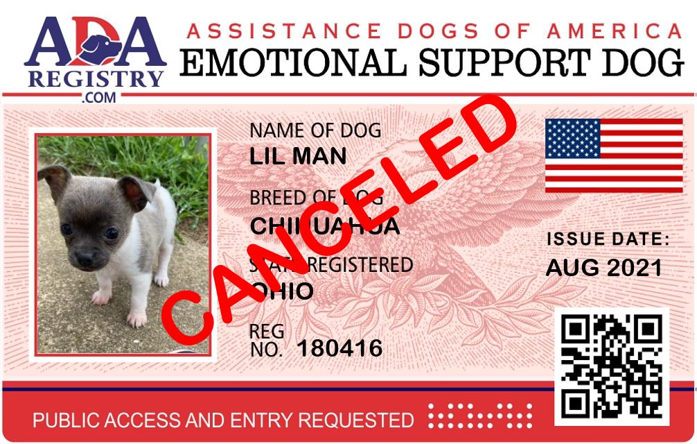 Emotional Support Dog Registration for Lil Man