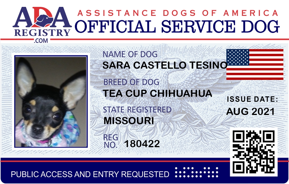Service Dog Registration for Sara Castello Tesino