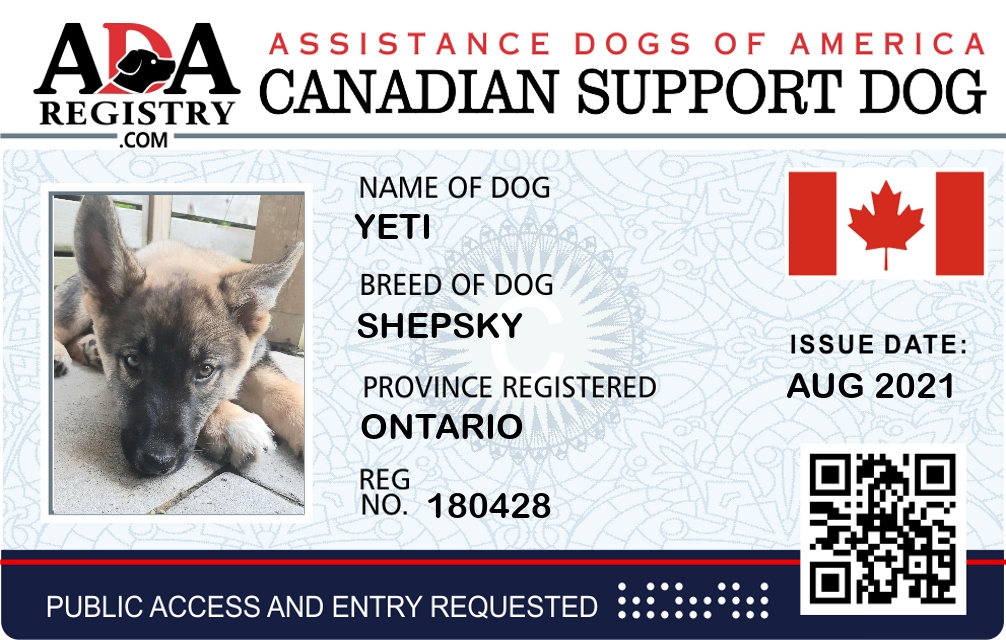 Emotional Support Dog Registration for Yeti