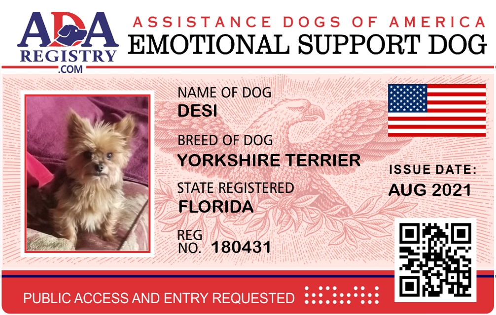 Emotional Support Dog Registration for Desi