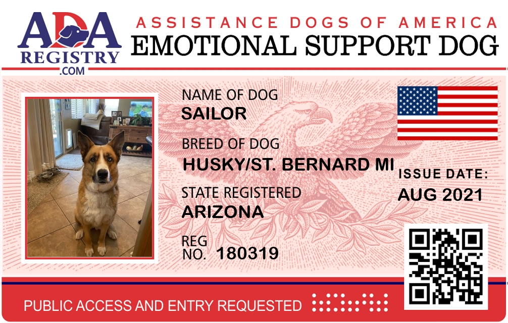 Emotional Support Dog Registration for Sailor